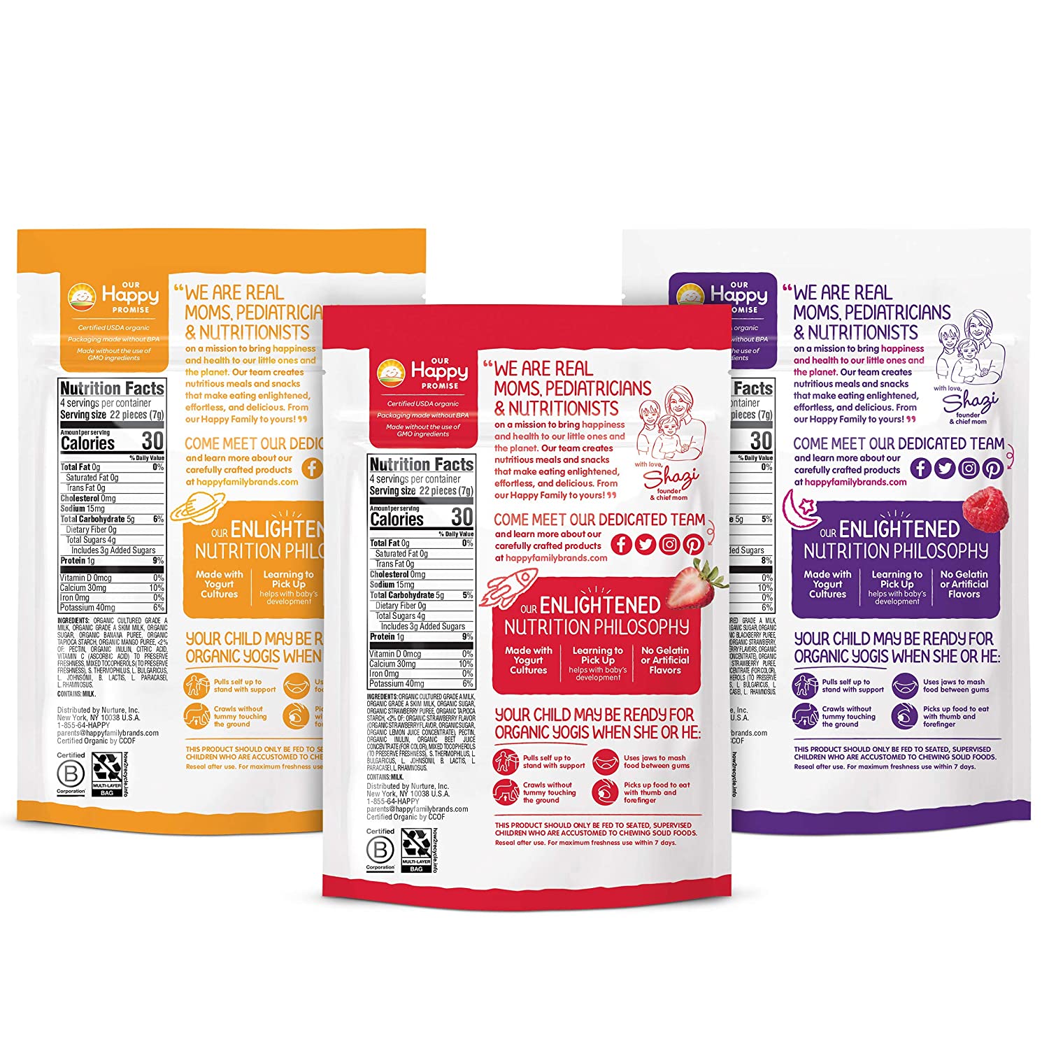 Happy Baby Organic Yogis Freeze-Dried Yogurt & Fruit Snacks, Variety Pack, 6 Count (2 of Each Flavor)