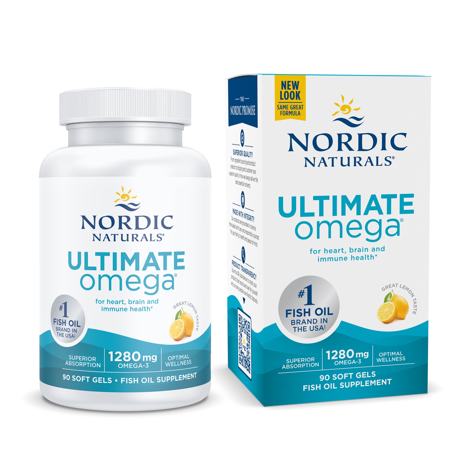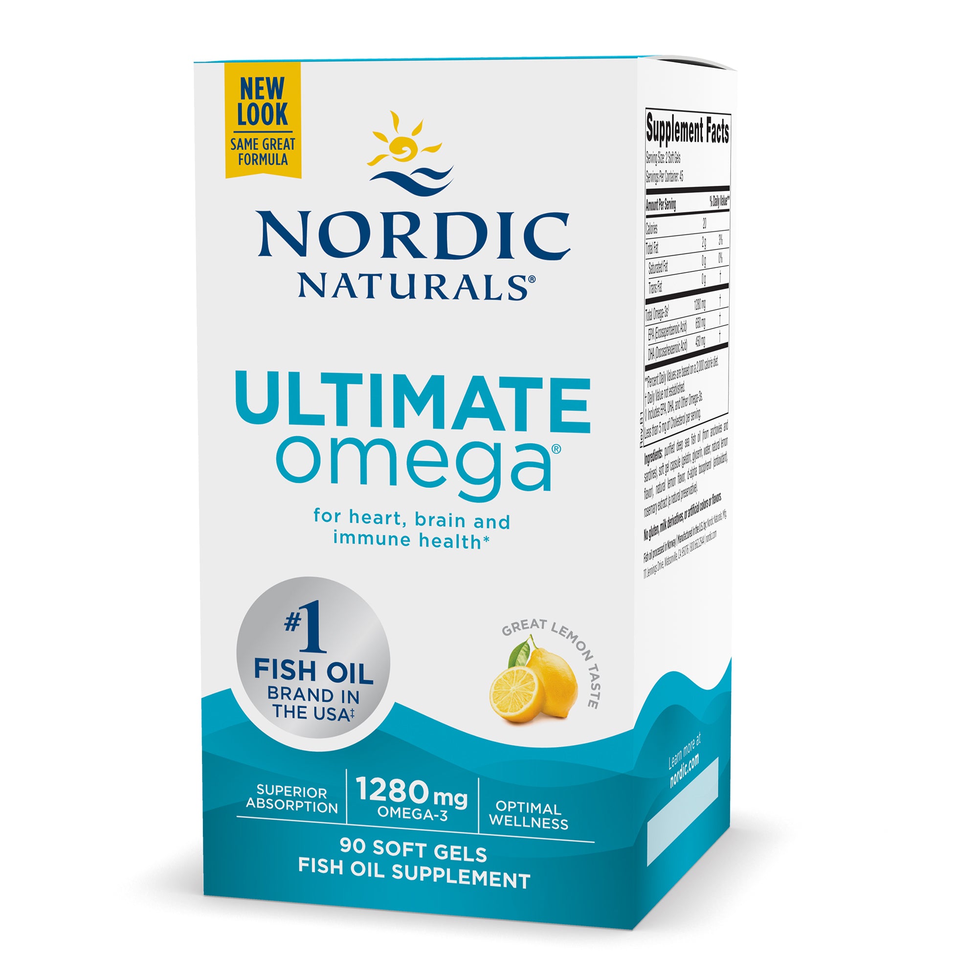 Nordic Naturals Ultimate Omega, Lemon Flavor - 1280 mg Omega-3-90 Soft Gels - High-Potency Omega-3 Fish Oil Supplement with EPA & DHA - Promotes Brain & Heart Health - Non-GMO - 45 Servings