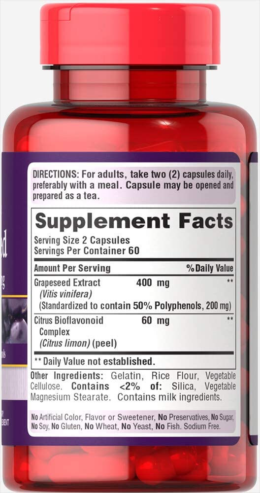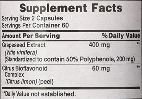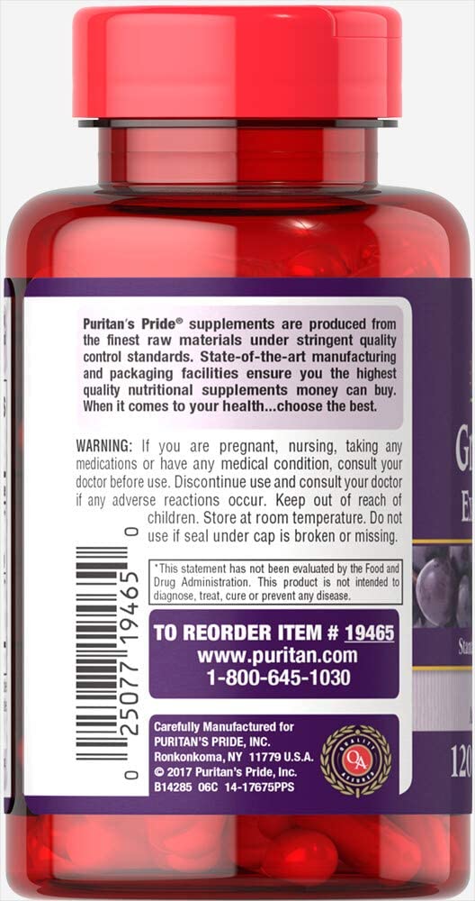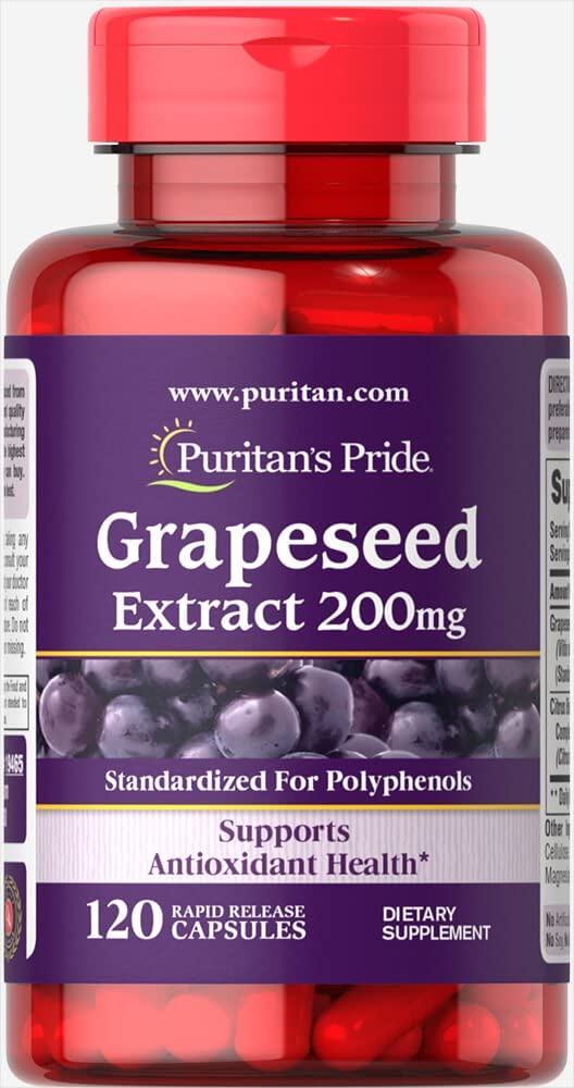 Puritans Pride Grapeseed Extract 200 Mg Capsules, 120 Count
