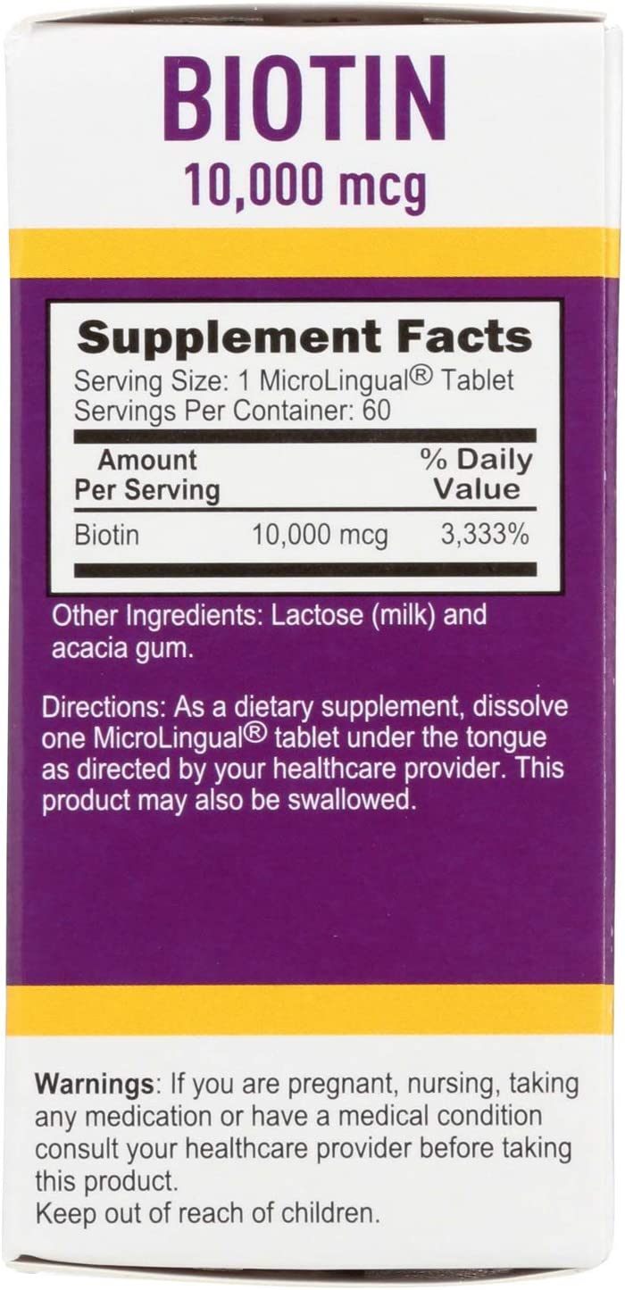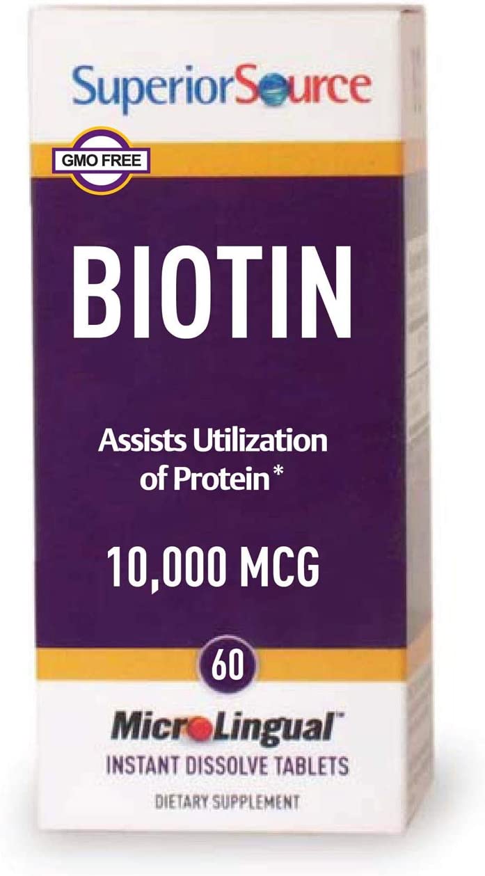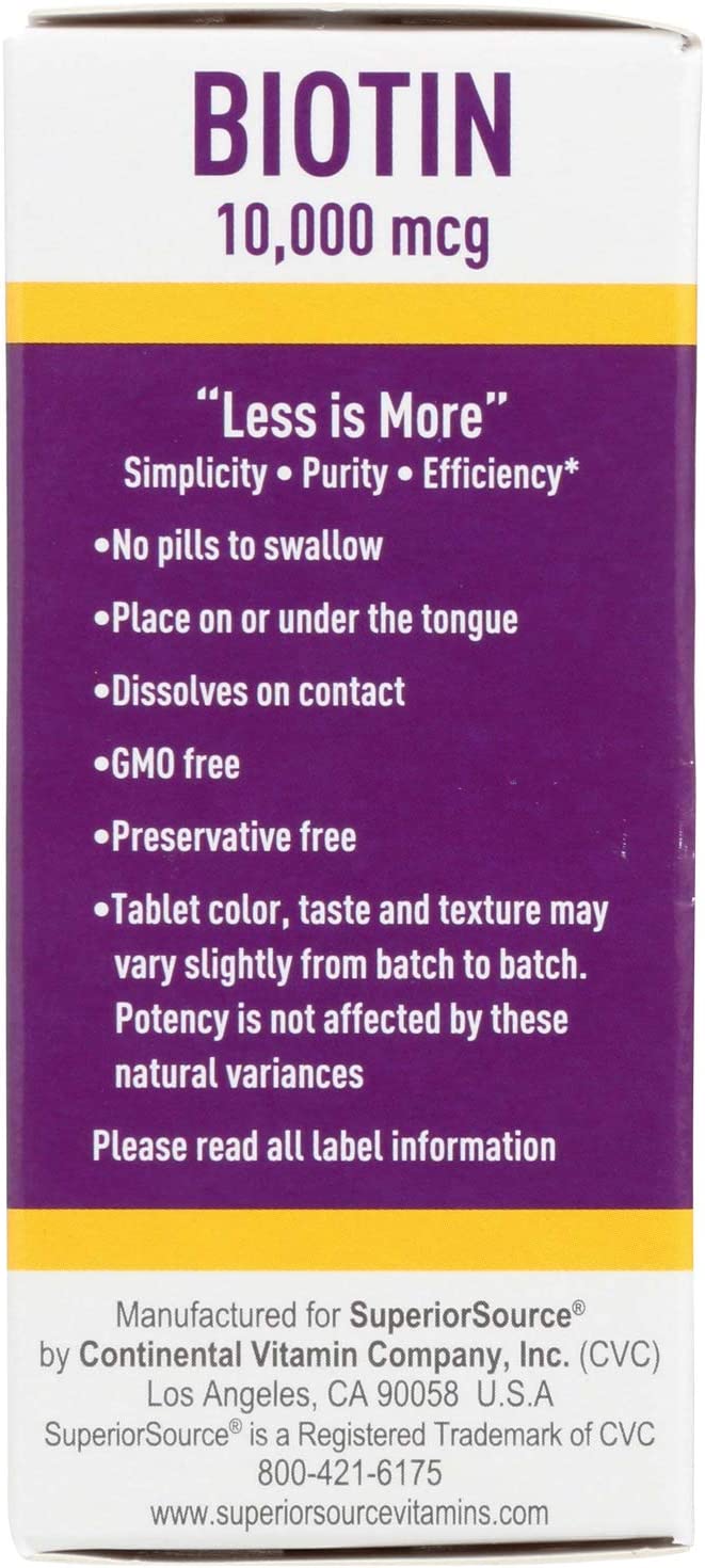 Superior Source Biotin 10000 mcg. Under The Tongue Quick Dissolve Sublingual Tablets, 60 Count, Supports Healthy Hair, Skin, and Nail Growth, Helps Support Energy Metabolism, Non-GMO