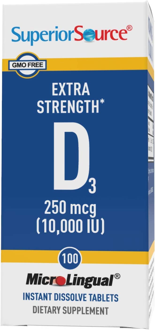 Superior Source Vitamin D3 10000 IU, Under The Tongue Quick Dissolve Sublingual Tablets, 100 Count, Promotes Strong Bones and Teeth, Immune Support, Healthy Muscle Function, Non-GMO