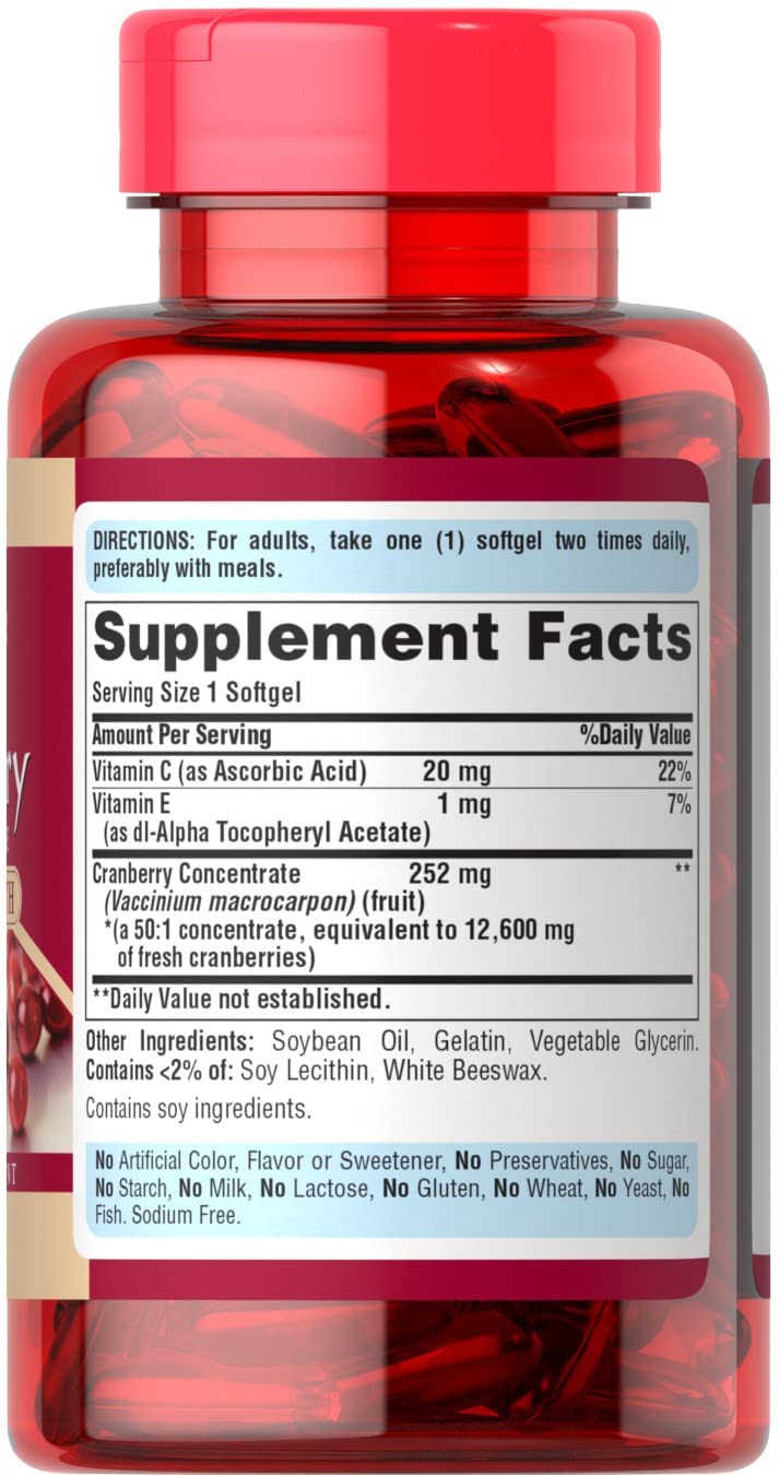 Triple Strength Cranberry Fruit Concentrate 12,600 Mg, Supports Urinary and Bladder Health, 100 Count by Puritan's Pride